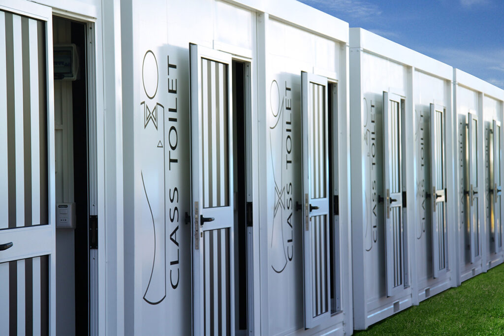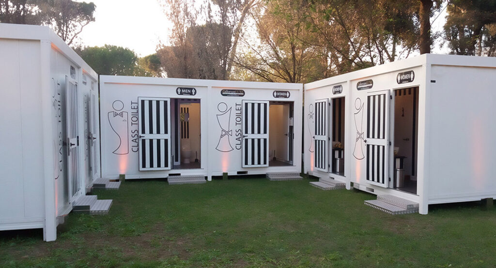 Sobrietà ed eleganza in un modello White and Gray. Sei stanze da bagno dotate di appendiabiti.